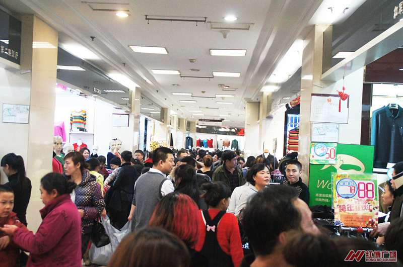 2013年12月31日,红博广场亲情日再创辉煌!短短4小时的活动吸引2万顾客蜂拥而至,抢购商品,商场内各通道水泄不通。万人空巷不是神话,“亲情日”一经启动,全城震惊!