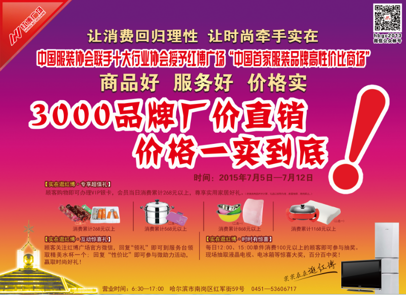 哈尔滨红博广场3000品牌厂价直销,价格一实到底!