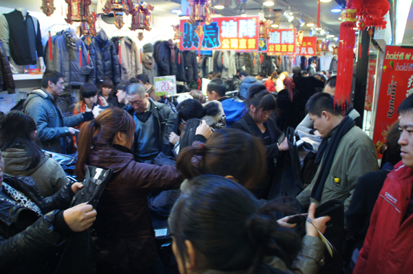 2011年12月30日17:30—19:30分是红博广场的亲情日,17:00分时等在门外的顾客已经是人山人海了,此次活动宗旨是全场商品批发价销售,活动开始后,商场内更是人流涌进,由于客流较大活动由19:30分结束改为20:00结束,让顾客有更多的时间挑选喜欢的商品。亲情日活动举办的很成功,不仅增加了商场的客流同时为业主清仓了库存,获得了顾客及业主的连连好评!