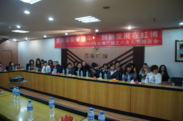 以《贯彻落实管理年 创新发展在红博》为主题的2012年红博广场三八女人节座谈会在阳光大厅会议室召开。主业谈了一些经营中、生活中的一些小事跟大家分享并载歌载舞给大家带来了快乐。