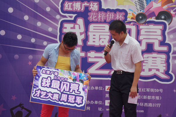 2012年7月22日,红博广场我最闪亮才艺大赛复赛第三场在金牛口舞台如期举行,此次复赛共有6位参赛选手,经过一番角逐后,选手曹华伟以优异成绩获得了周冠军,期待他在决赛的时候有精彩的表现。
