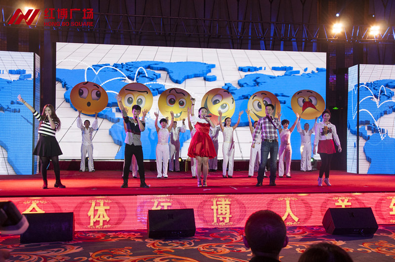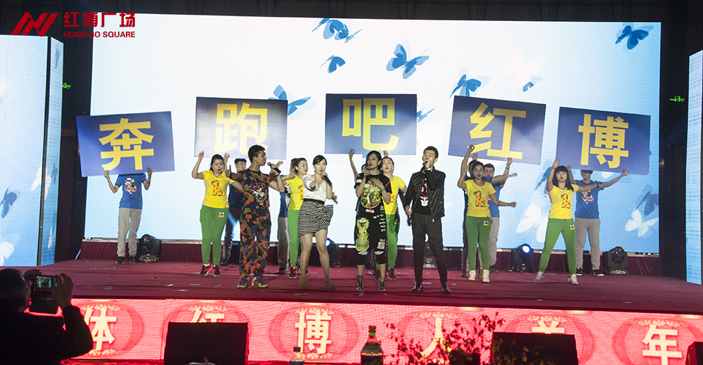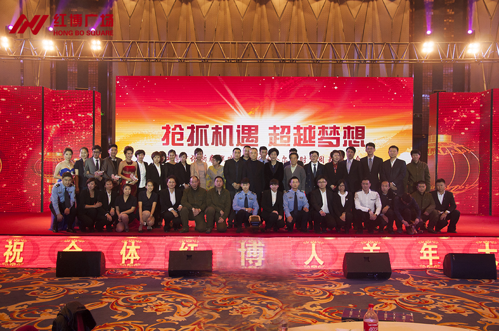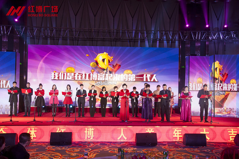 2015年2月10日,红博广场新春联欢会暨2015哈尔滨时装周表彰大会在华旗礼堂圆满落幕!来自红博广场的700名业者、为2015哈尔滨时装周做出突出贡献的全体红博人、红博商业各分店领导及员工共1000人欢聚一堂,以《抢抓机遇 超越梦想》为主题,自编自演了12个节目,以茶话会的方式畅谈机遇、憧憬未来。全国人大代表、红博商业总经理王丽梅、红博商业执行总经理吴耀宏、红博商业副总经理张丽娟、王馨等领导与全体红博人一起载歌载舞,度过快乐而温馨的小年前夜。