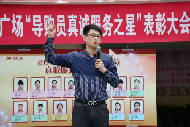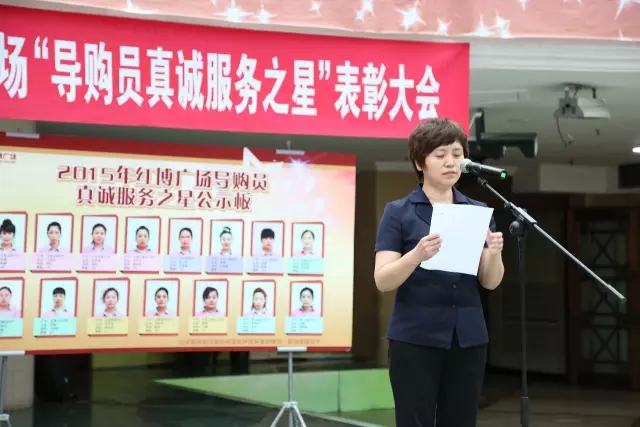 9月1日6时,2015年红博广场“导购员真诚服务之星”表彰大会在阳光大厅隆重召开。红博广场总经理周华斌、副总经理王桂萍、丁寅锋、运营部部长杜聪、保卫部长张继民等出席会议,近千名导购员精神饱满、斗志昂扬地参加会议。会议对商场评选出的15名“真诚服务之星”进行了表彰。