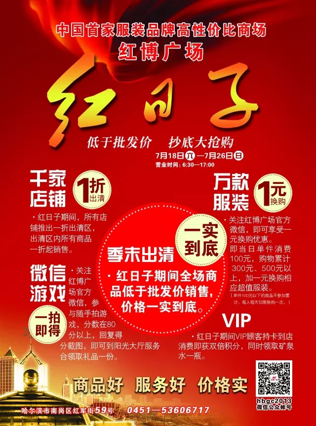 红博广场红日子――低于批发价,抄底大抢购!季末出清,价格一实到底!