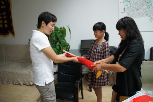孤困儿童张雨欣母亲为红博商业送爱心妈妈锦旗!